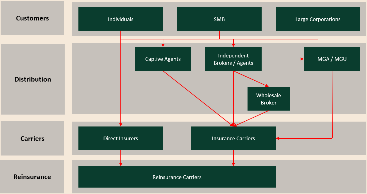 To understand Kinsale’s competitive advantage, it helps to map out the main actors in the (specialty) insurance ecosystem.