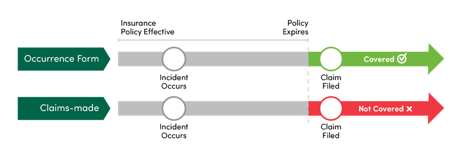 Occurrence policies respond if the loss event occurs during the policy period, regardless of when the claim is reported. The timing of when the claim is made does not matter as long as the event that led to the loss happened during the policy’s term.